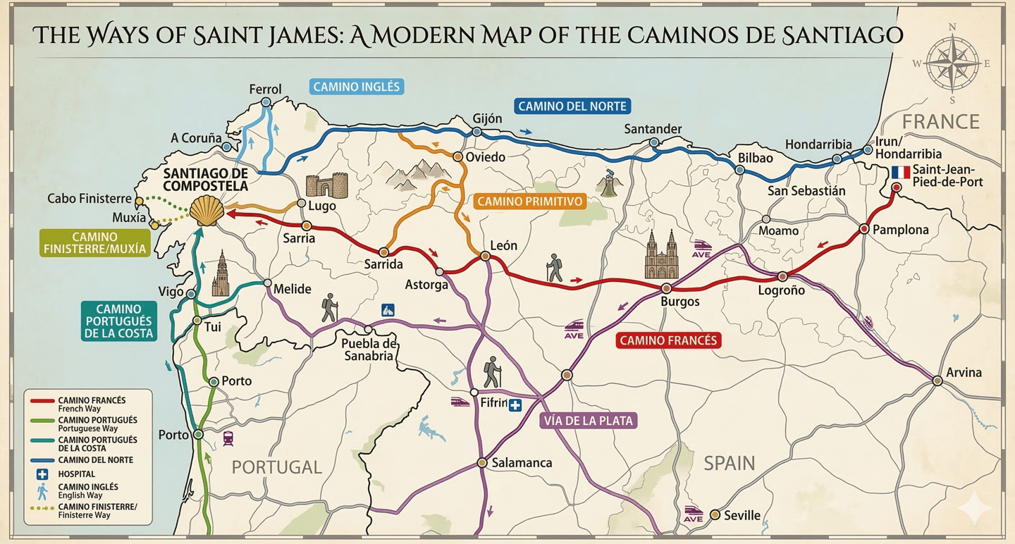 Which Camino should I walk?" is the most-searched question in the entire pilgrimage niche, and most pages that try to answer it are either too superficial or too practical to be genuinely useful. This page earns its authority by adding the dimension no other comparison resource offers: the medieval history of each route. Why did pilgrims choose this path through the mountains rather than that one? What did they encounter, what did they fear, and what has survived from the twelfth century to the present day? Practical comparison tables and the historical narrative coexist here, serving both the planner who needs logistics and the reader who wants to understand what they are about to walk.